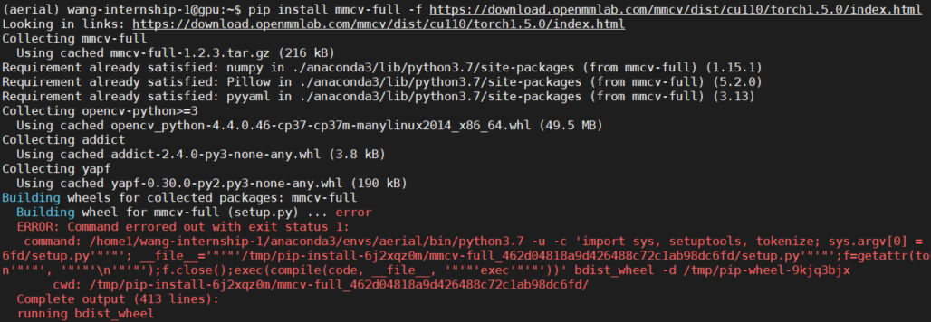 最近在用anaconda创建的虚拟环境中安装mmcv时报错