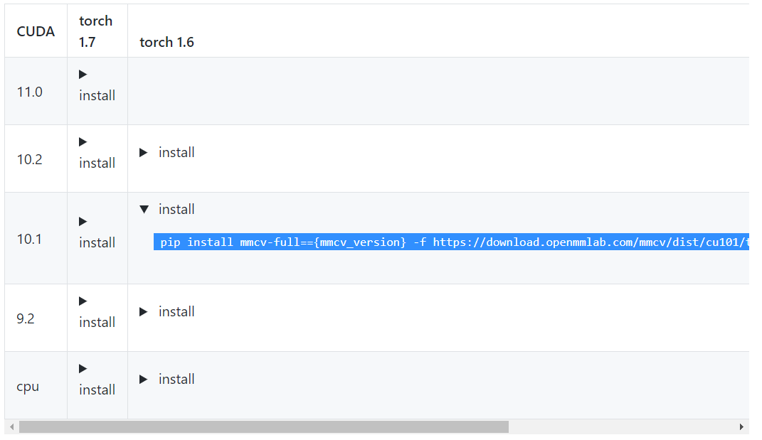 pip install mmcv-full==1.2.1 -f https://download.openmmlab.com/mmcv/dist/cu101/torch1.6.0/index.html