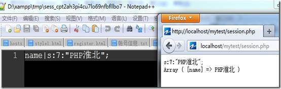 上图:左侧是保存在xammp/tmp/下的session文件,内容是PHP序列化的格式