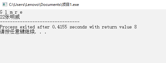(1)将“China”译成密码,密码规律是:用原来的字母后面第4个字母代替原来的字母。例如,字母“A”后面第4个字母是“E”,用“E”代替“A”,因此,“China”应译为“Glmre”。请编一段程序,用赋初值的方法使c1、c2、c3、c4、c5这5个变量的值分别为’C’,'h', 'i','n', 'a',经过计算,使c1、c2、c3、c4、c5分别变为:'G','l','m',r','e',并输出。