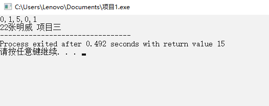 (3)已知a=2,b=3,c=4, x=(a+b<c)&&a!=b、y=(a+b<c)||a!=b、z=a+b,n=a/b,b+c、m=(a+b,a/b,c%b),输出x,y,z,n,m的值,并用逗号隔开。