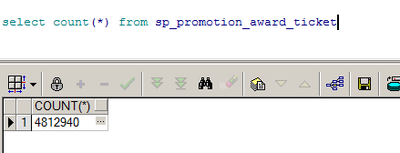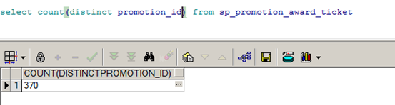 从sql中看,where条件中用到sp_promotion_award_ticket的列有3个,即:TRANS_ID,claim_org_code,promotion_id,这3个列对应的记录数如下: