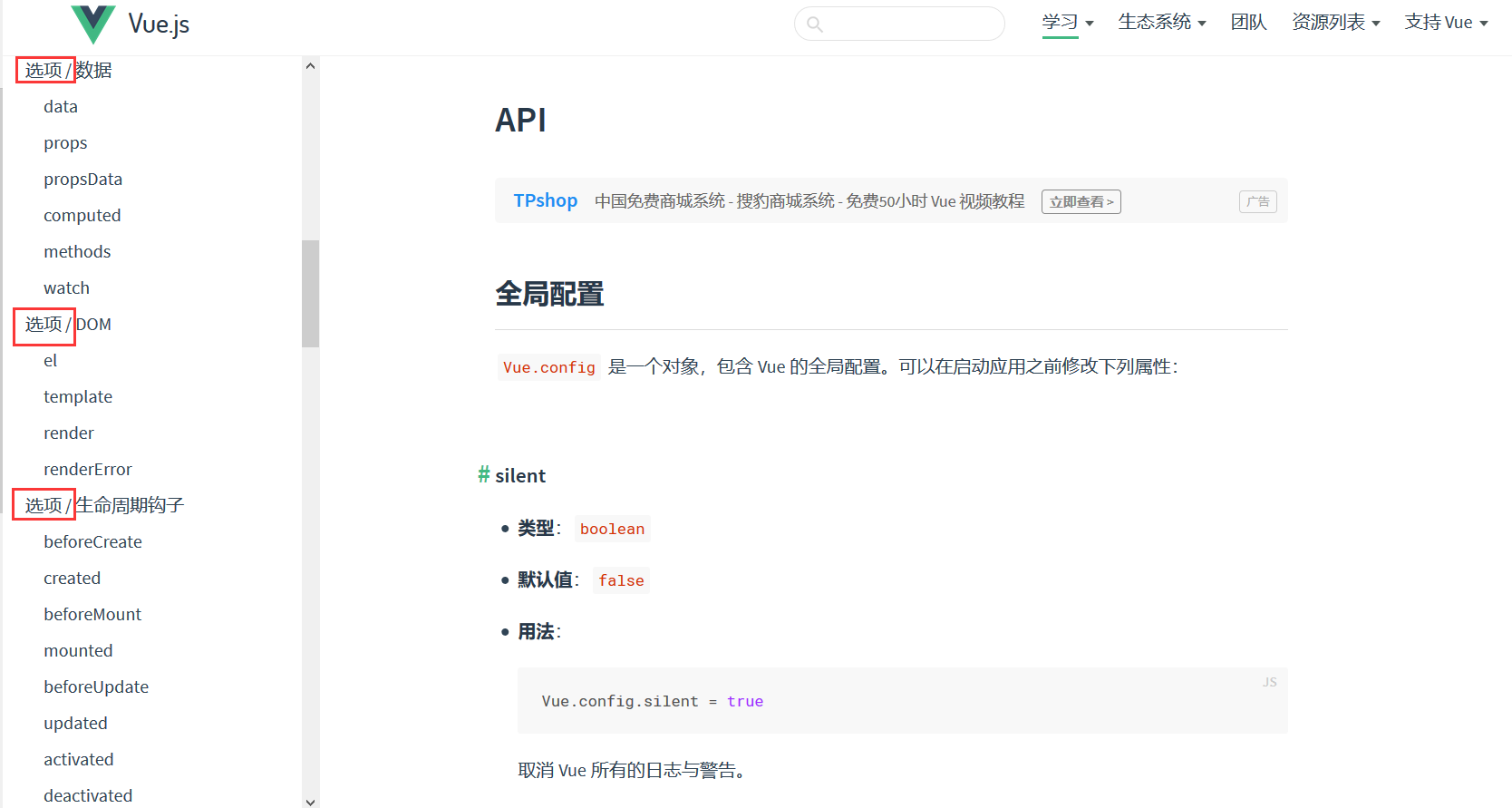 更多的 全局变量的设置请查看vue.js的api:https://cn.vuejs.org/v2/api/