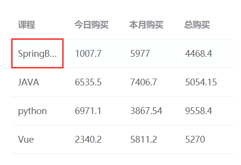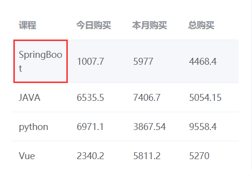 <template> <div> <el-row class="home" :gutter="20"> <el-col :span="8"> <el-card shadow="hover" style="height: 290px"> ..... </el-card> <el-card shadow="hover" style="height: 633px;margin-top: 20px"> <el-table :data="tabeData"> <!--show-overflow-tooltip单行显示 默认为true--> <el-table-column show-overflow-tooltip v-for="(val,key) in tableLable" :key="key" :prop="key" :label="val"></el-table-column> </el-table> </el-card> </el-col> <el-col :span="16"> ..... </el-col> </el-row> </div> </template> <script> import '../../assets/css/home.css' export default { data(){ return { ....., tabeData: [], tableLable: { name: '课程', todayBuy: '今日购买', monthBuy: '本月购买', totalBuy: '总购买' } } }, methods: { getTableData(){ //定义事件,获取 mock数据 this.$http.get('/home/getData').then(res => { res = res.data; this.tabeData = res.data.tableData; console.log(this.tabeData); }); } }, created() { //在 实例创建的时候,就去调用 getTableData方法 this.getTableData(); } } </script>