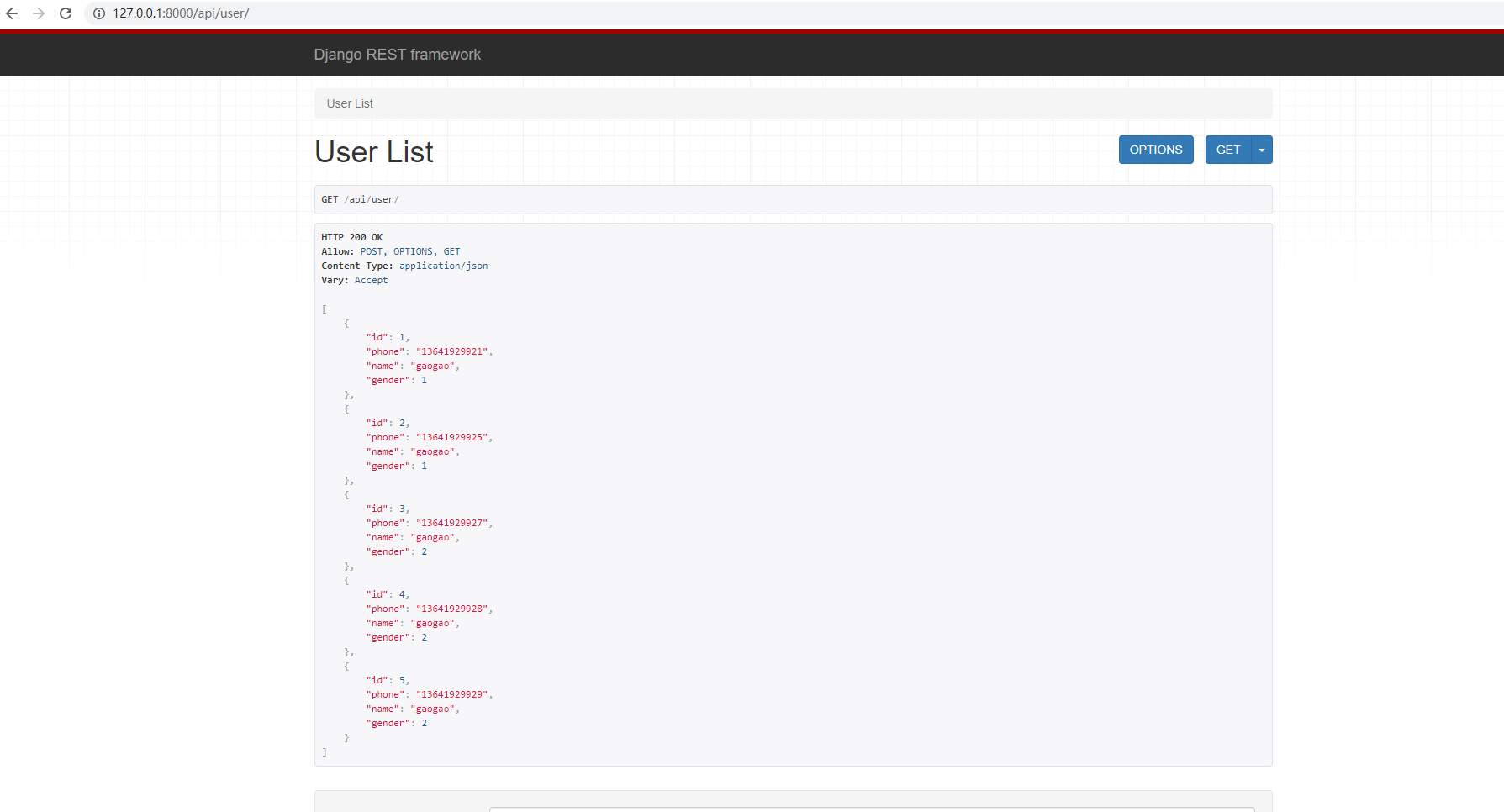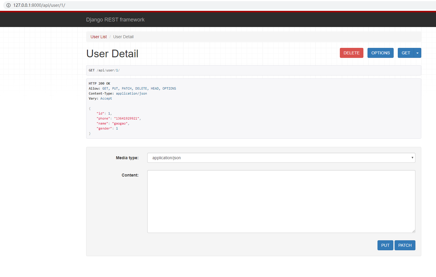 1.GET: http://127.0.0.1:8000/api/user/1/