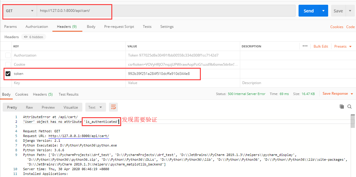 然后我们在视图 Views.py 中的 CartView 视图中permission_classes换成自己的就行啦: