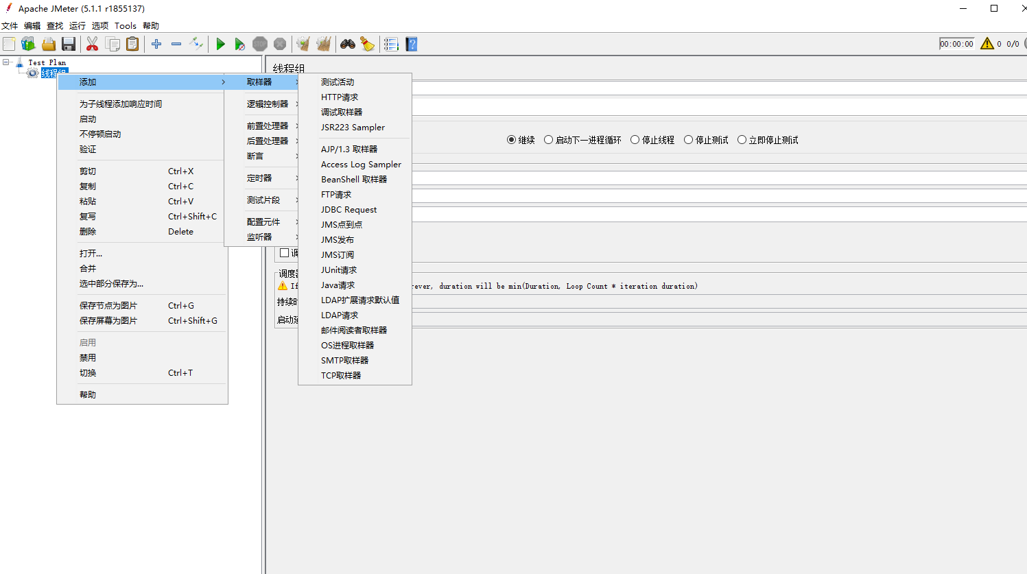取样器的访问路径:【测试计划】---【线程组】---【Sampler】