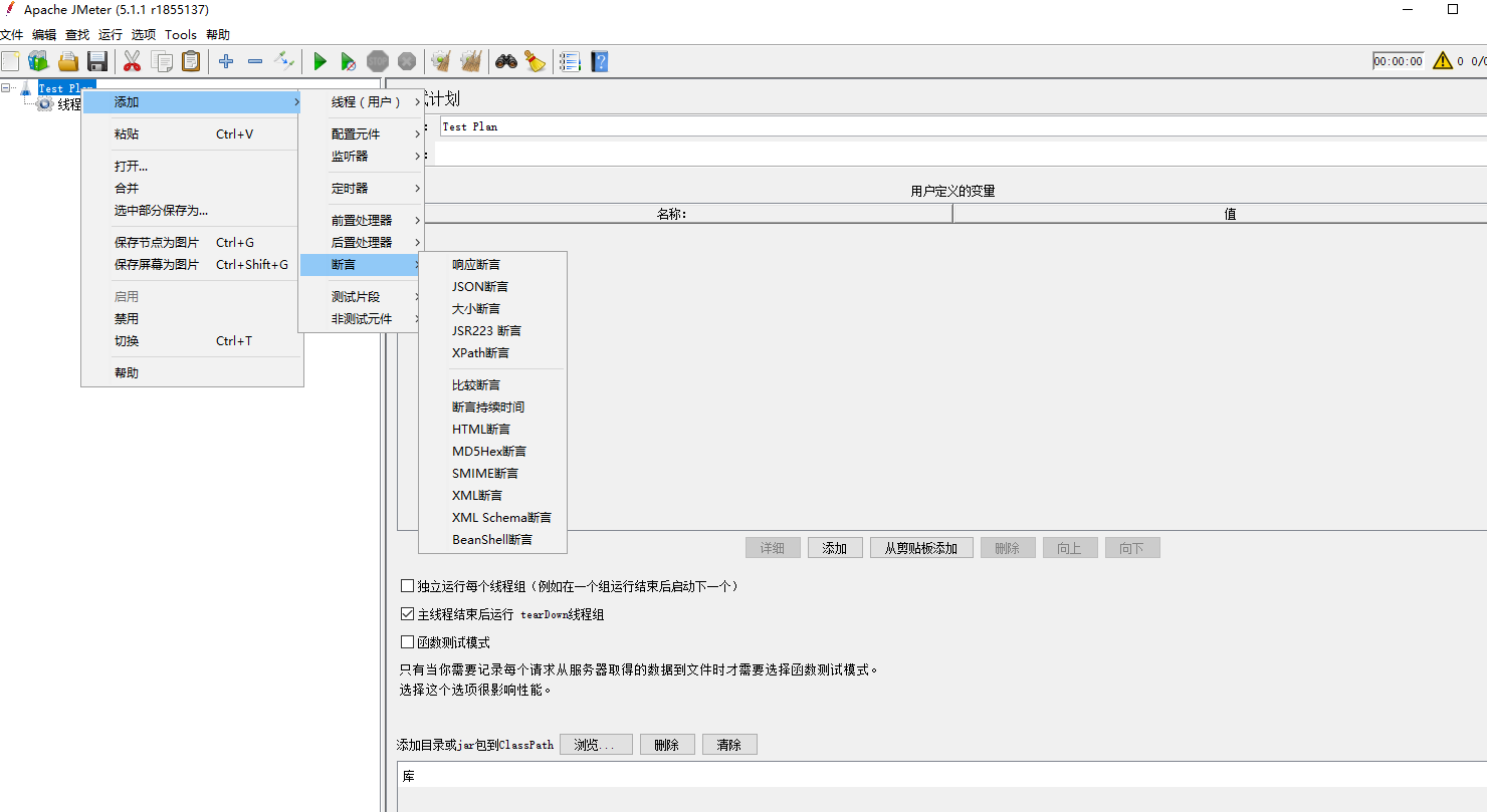 断言是用来验证结果是否正确,可以帮助我们来判断请求是否成功返回且是符合要求。就相当于loadrunner中的检查点。通常我们用的比较多的就是“响应断言”