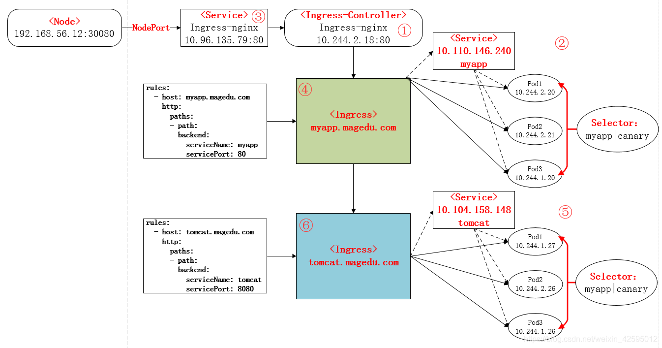 ④定义Ingress规则,使Ingress-controller和后端服务的Pod组进行关联。