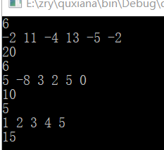 例如,当(a[1],a[2],a[3],a[4],a[5],a[6])=(-2,11,-4,13,-5,-2)时,最大子段和为20。