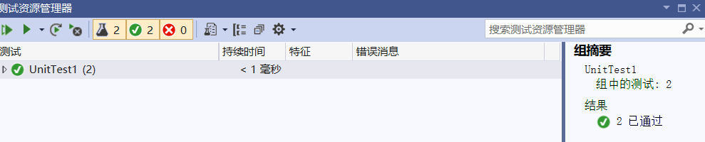 - 程序采用VS2019自带的单元测试工具进行单元测试