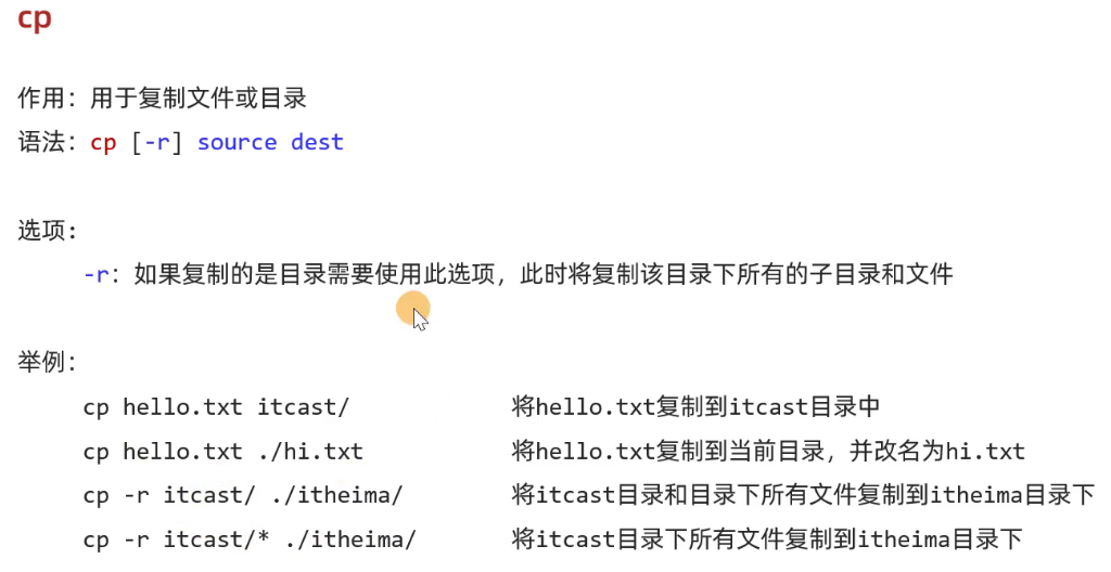 cp hello.text hi.txt 将hellow.txt复制,并改名为hi.txt //备份用