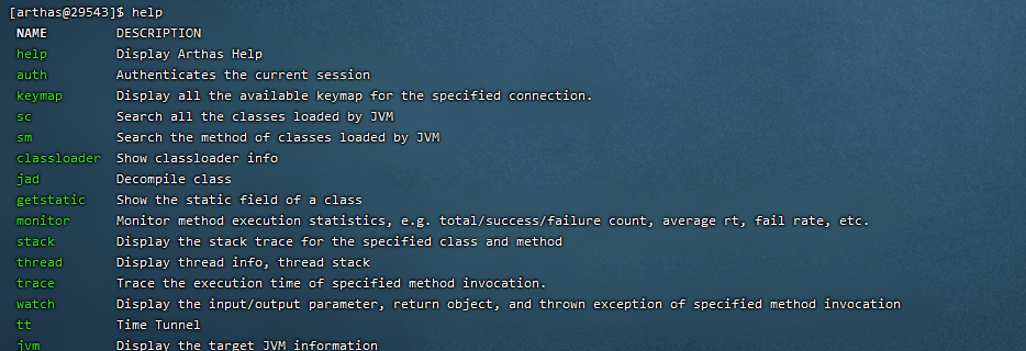 Arthas 支持JDK 6+,支持Linux/Mac/Windows,采用命令行交互模式,同时提供丰富的 Tab 自动补全功能,进一步方便进行问题的定位和诊断。