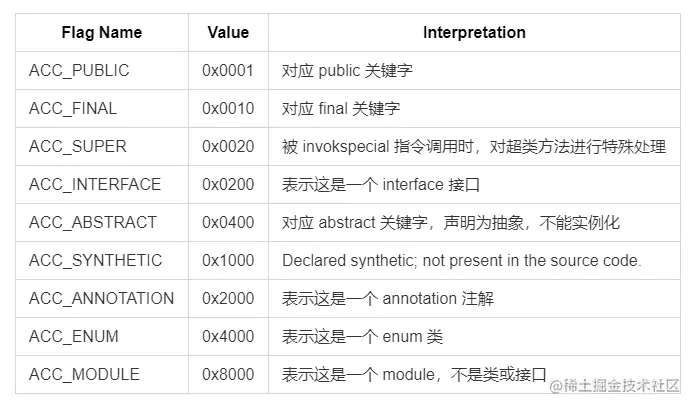 需要注意的是,ACC_SUPER标志只对于调用超类方法时有意义,对于其他情况则没有任何影响。通常情况下,编译器会自动地为每个类添加ACC_SUPER标志,因此在大多数情况下我们不需要手动地指定这个标志。