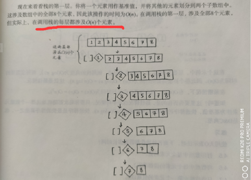 数组 1,2,3,4,5,6,7,8 如果把第一个数是基准值,实际上要调用八次才能完成排序,这就是最糟情况