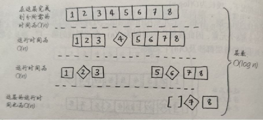 而把4作为基准值,就不需要那么多递归调用,调用栈就要短得多,为最佳情况。