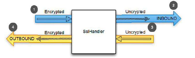 - 加密的入站数据被 SslHandler 拦截,并被解密