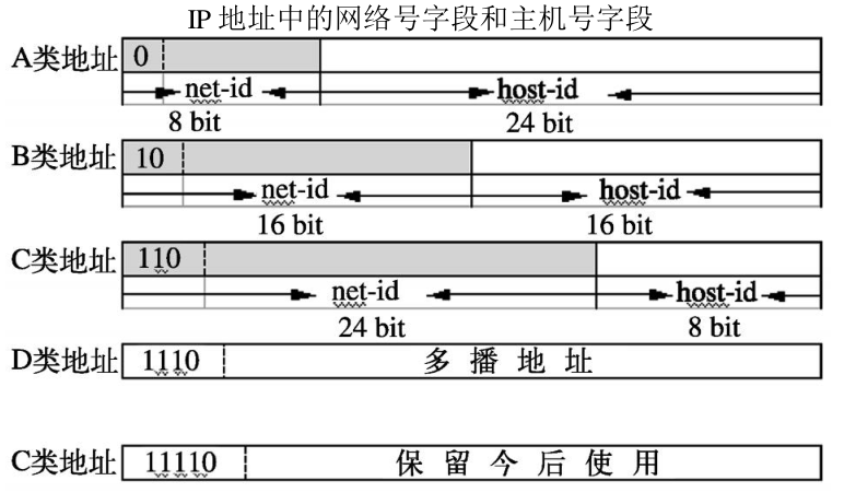五类IP地址分别为a(0-127)b(128-191)c(192-232)d(...)e(...)图中最后个c类地址有误为e类地址