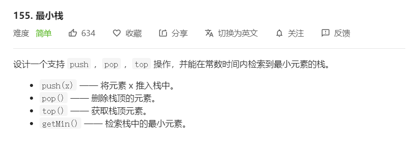 要在常数时间内返回栈的最小值,所以不能在getMin方法里再去找最小值了。只能在入栈和出栈的时候,就要记录当前栈最小值。
