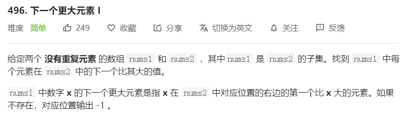 遍历nums1,对于nums1中的每个元素,在nums2中找到对应位置,接着用while循环找到下一个最大值。复杂度为O(N2)。