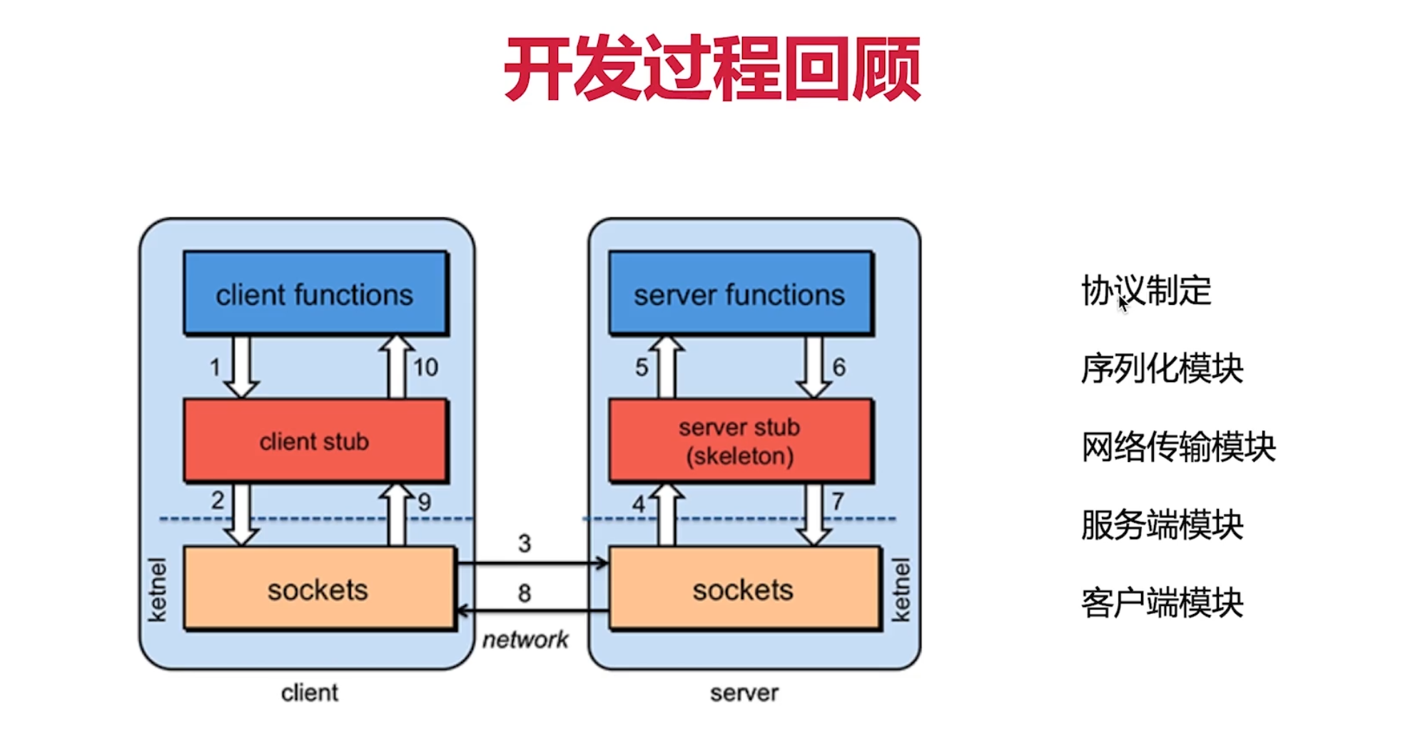 - 序列化和反序列化。客户端怎么把参数值传给远程的函数呢?在本地调用中,我们只需要把参数压到栈里,然后让函数自己去栈里读就行。但是在远程过程调用时,客户端跟服务端是不同的进程,不能通过内存来传递参数。甚至有时候客户端