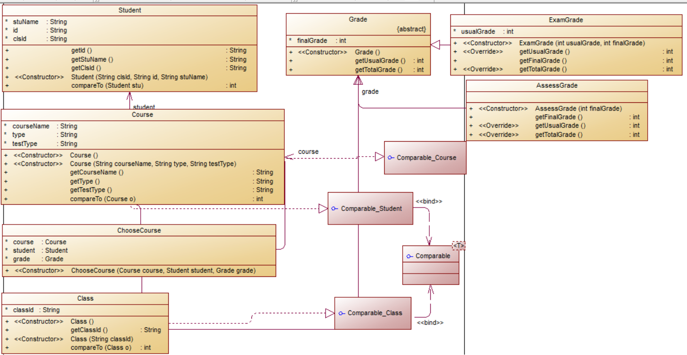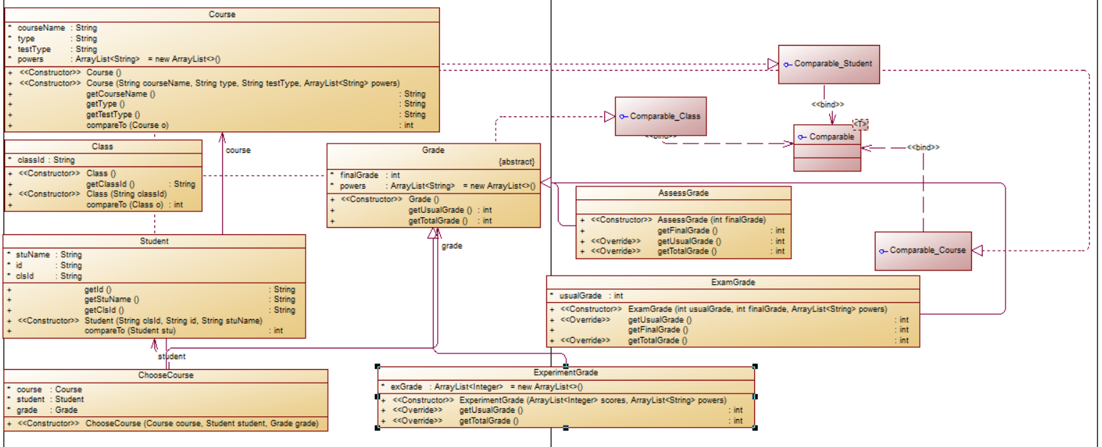 课程成绩统计程序题目要求再次不在赘述,以下给出第六次题目集的类图与相关分析: