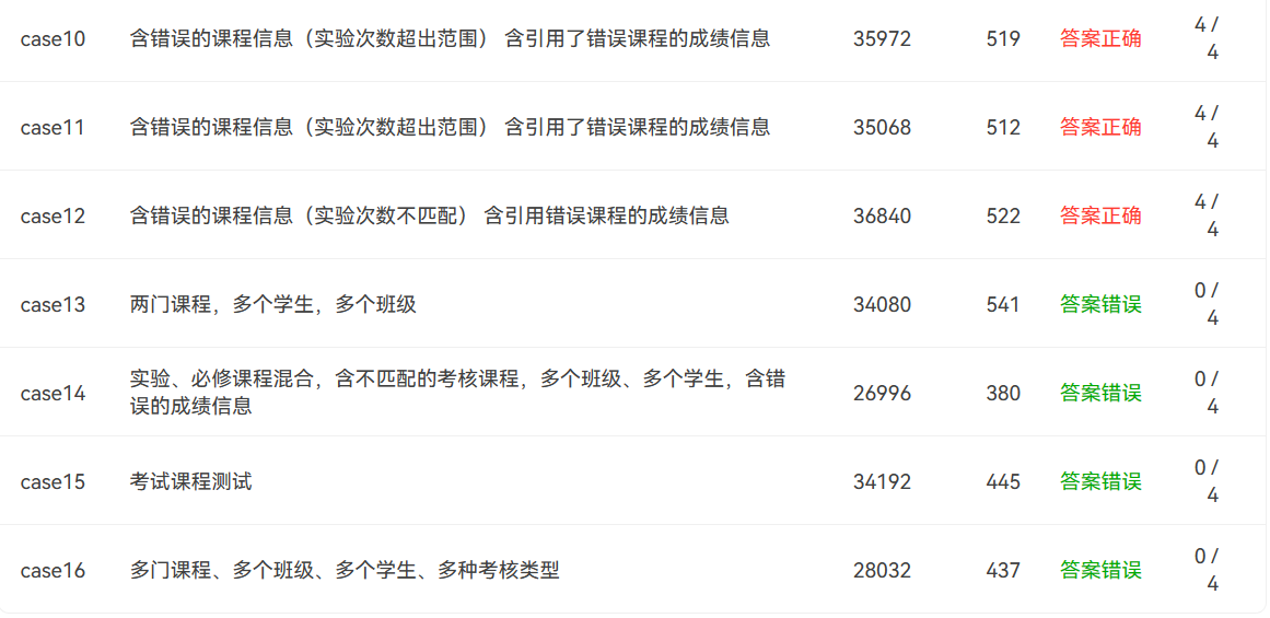 2、在课程成绩统计程序-3中, 在尝试多次后仍有几个测试点未过: