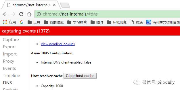 查看Chrome浏览器的DNS缓存信息(chrome://net-internals/#dns): -