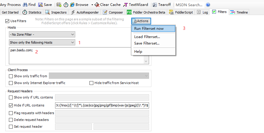 fiddler过滤域名:仅显示指定的域名