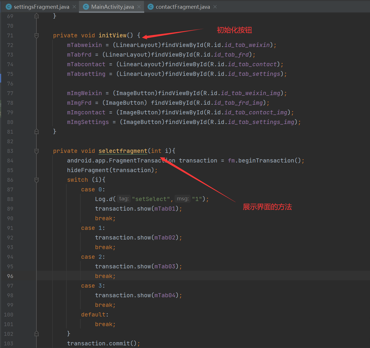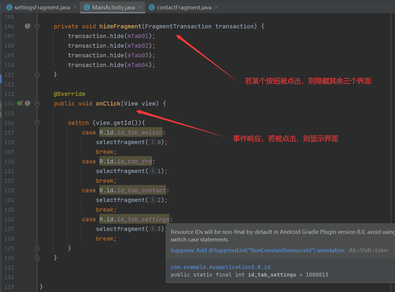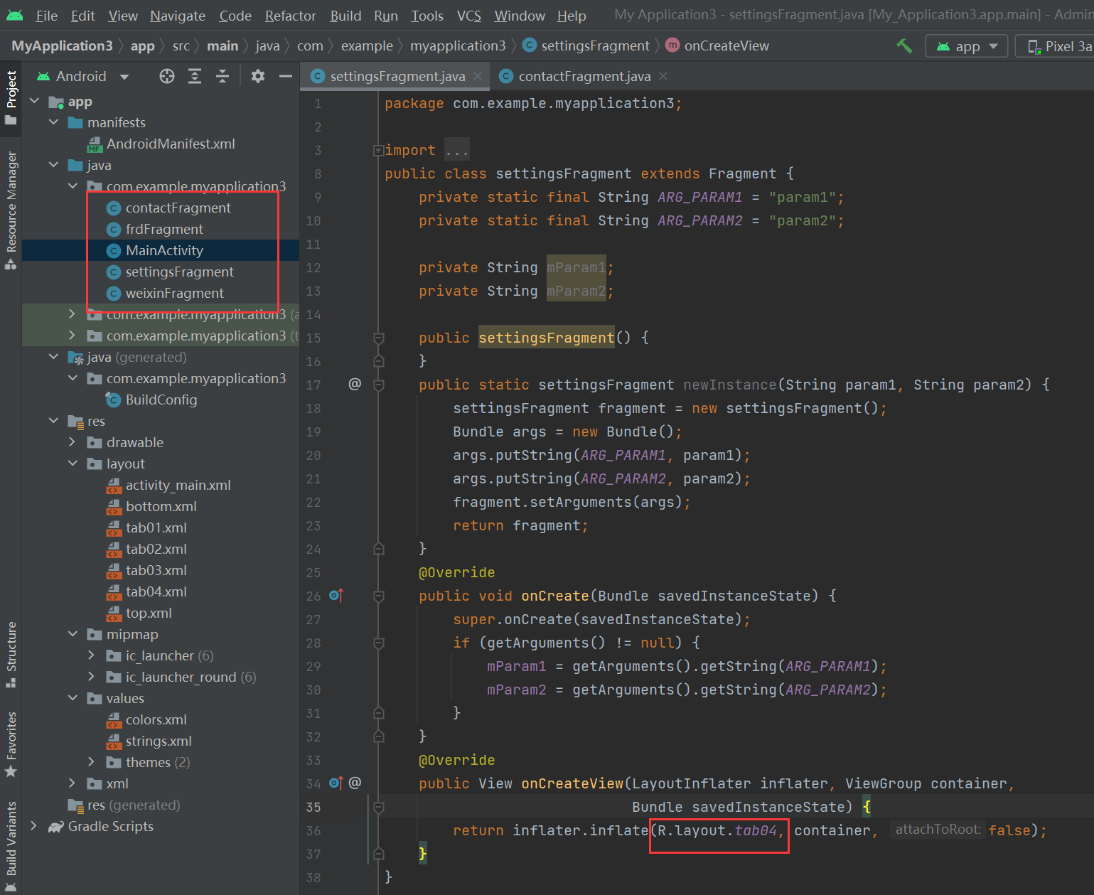 同理,设置好一个tab.xml=文件后,直接复制这个文件,然后粘贴在layout中,更改相应的id和text即可。