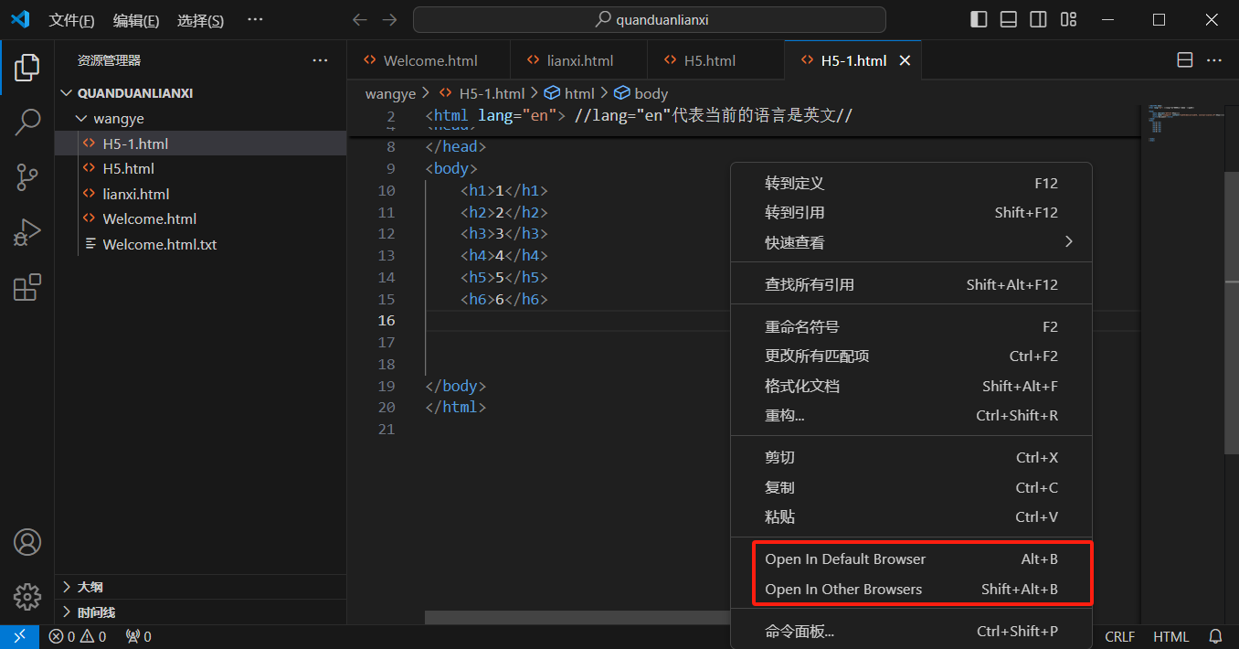 1、标题(Heading)是通过<1>-<6>标签进行定义的