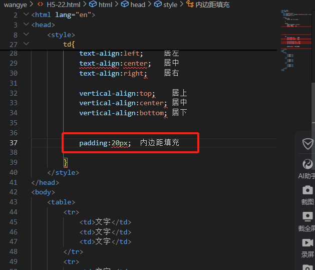如果在表的内容中控制空格之间的边框,应使用td和th元素的填充属性