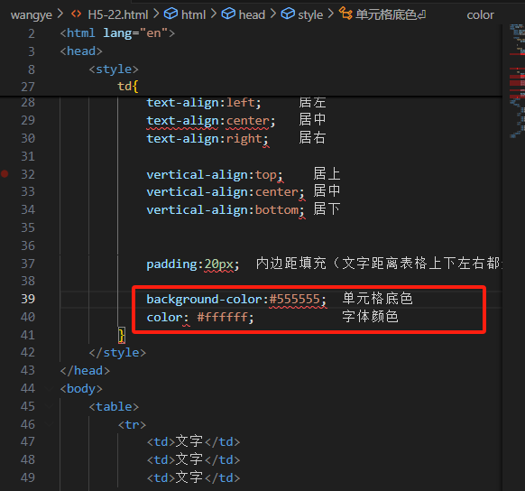 下面的例子指定边框的颜色,和th元素的文本和背景颜色