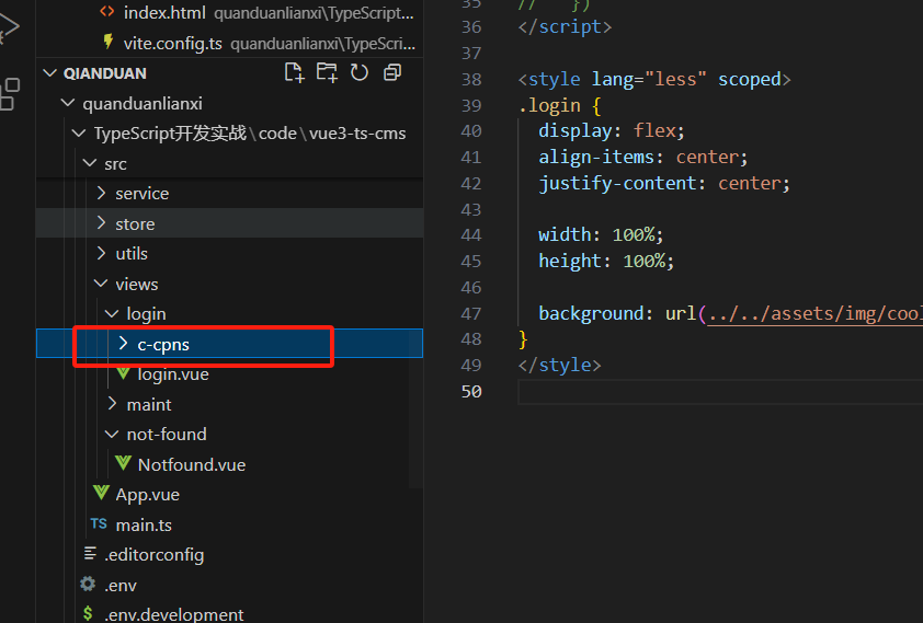 2、新建文件夹c-cpns(children-components),用来放当前这个登入页面的子组件。(一些公共组件还是放到component里面)