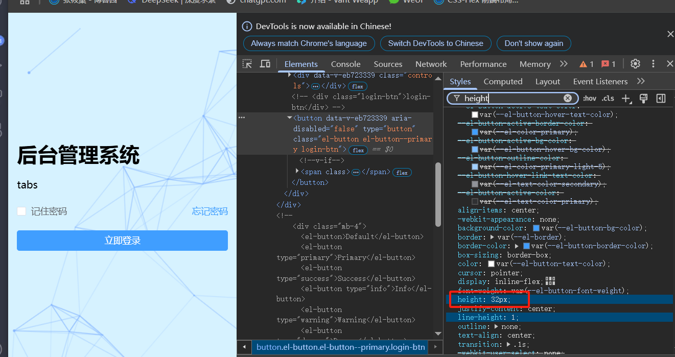 --el-button-size:这是一个 CSS 自定义属性(也称为 CSS 变量)。在 Element UI 中,使用自定义属性来定义一些组件的样式相关值,--el-button-size这个变量很可能是用于控制按钮的大小相关的尺寸值(比如按钮的高度等)。 -