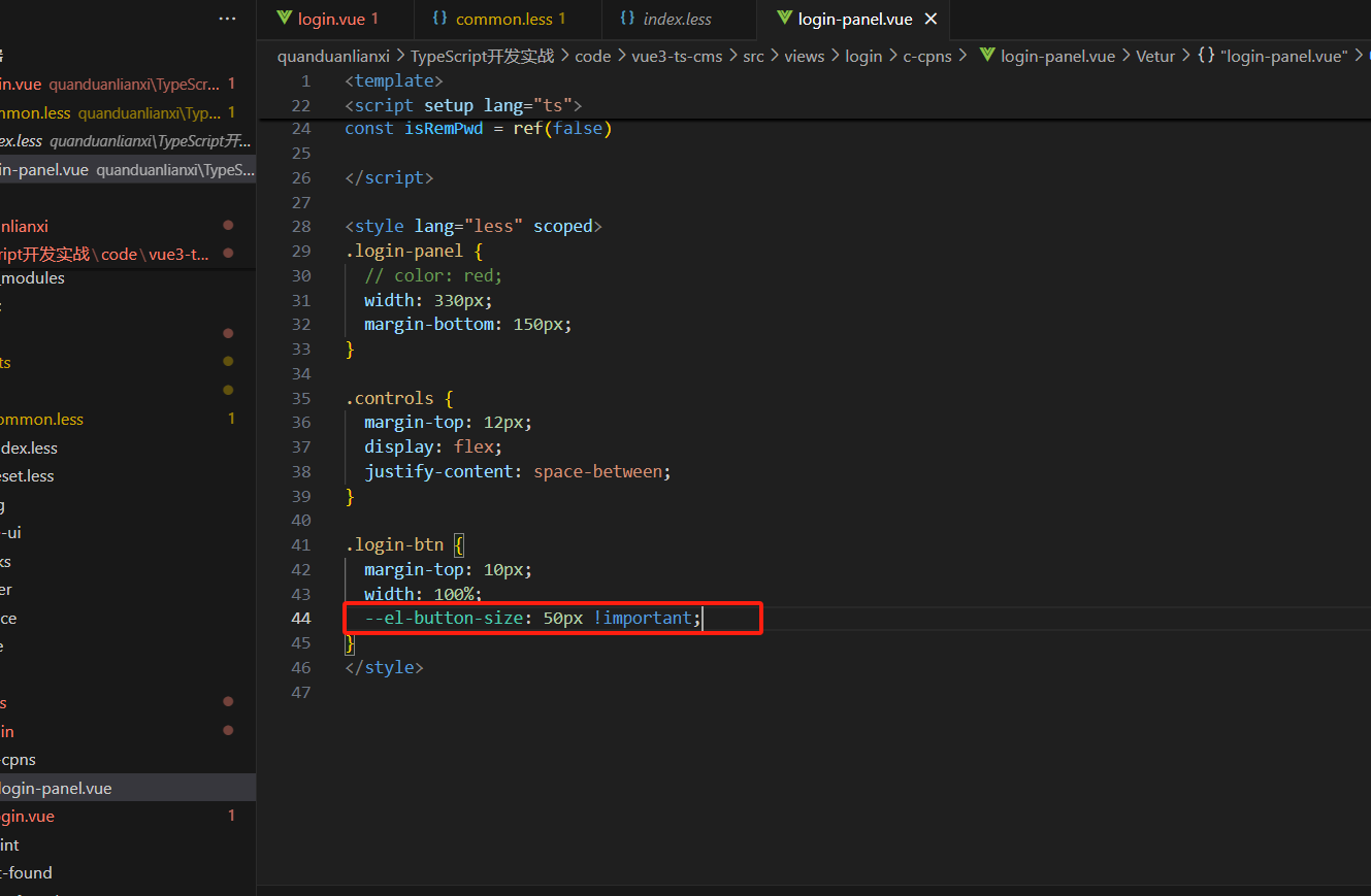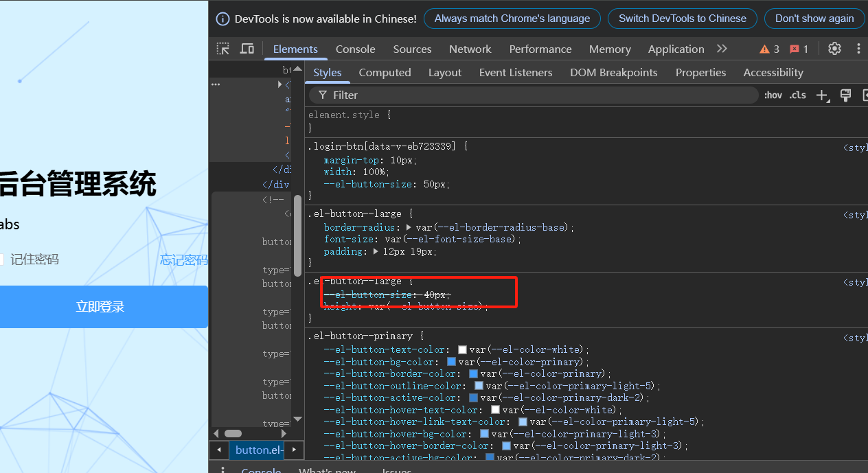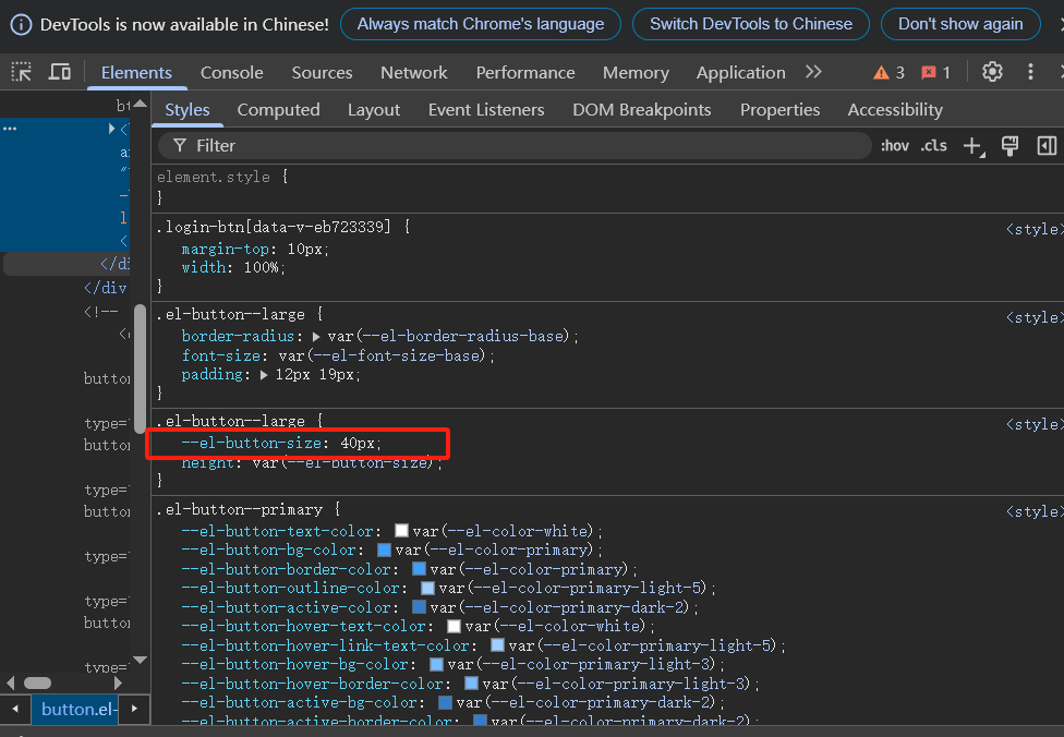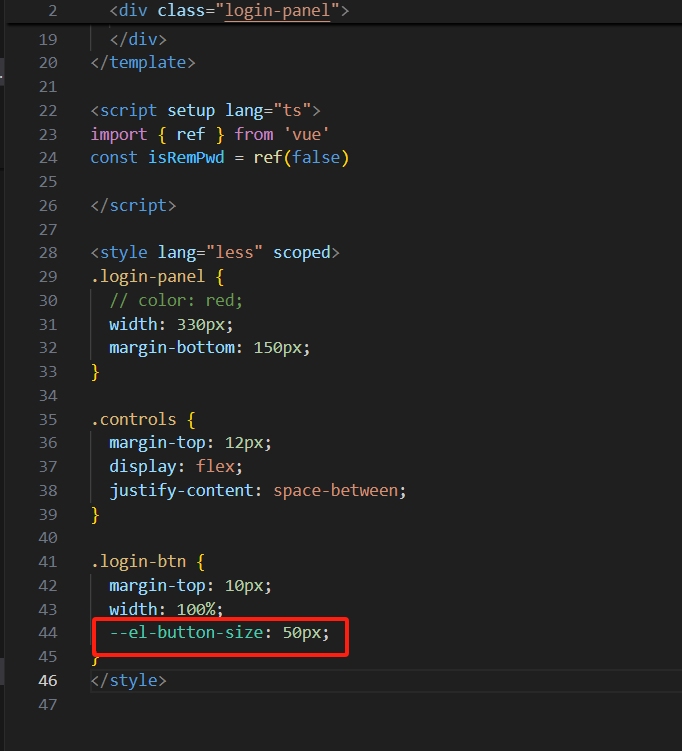 --el-button-size 变量控制)设置为 50px 。因为前面已经有一个类了