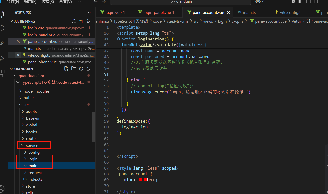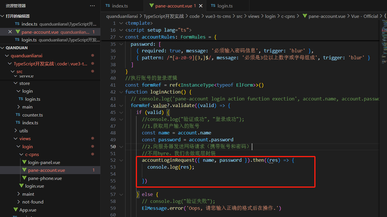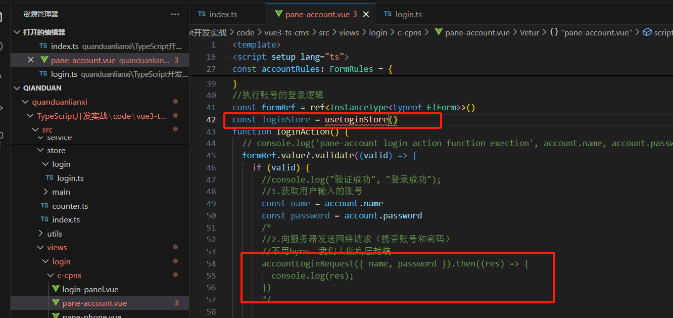 import { accountLoginRequest } from '@/service/login/login'放到这里面来