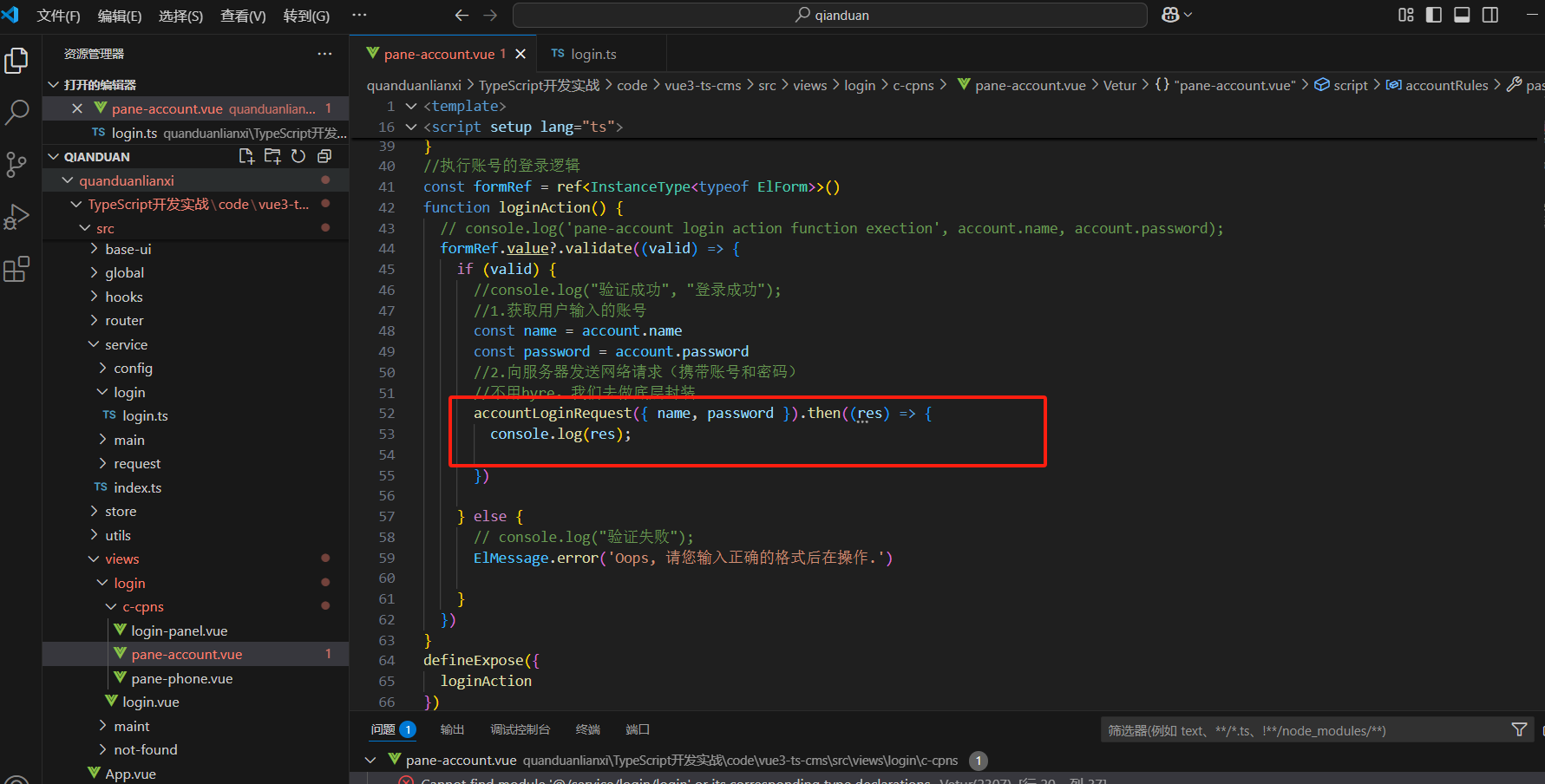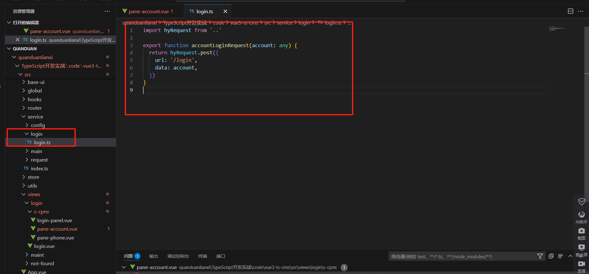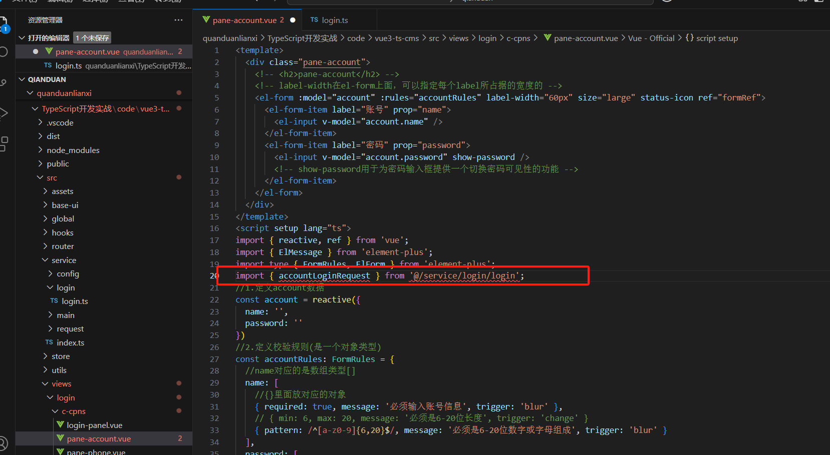 import { accountLoginRequest } from '@/service/login/login'放到这里面来