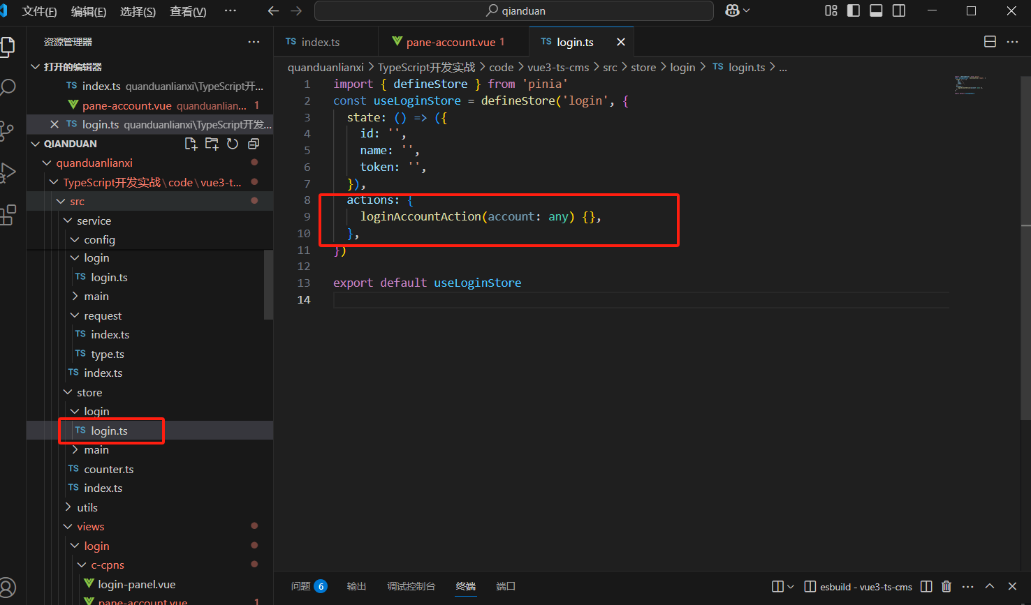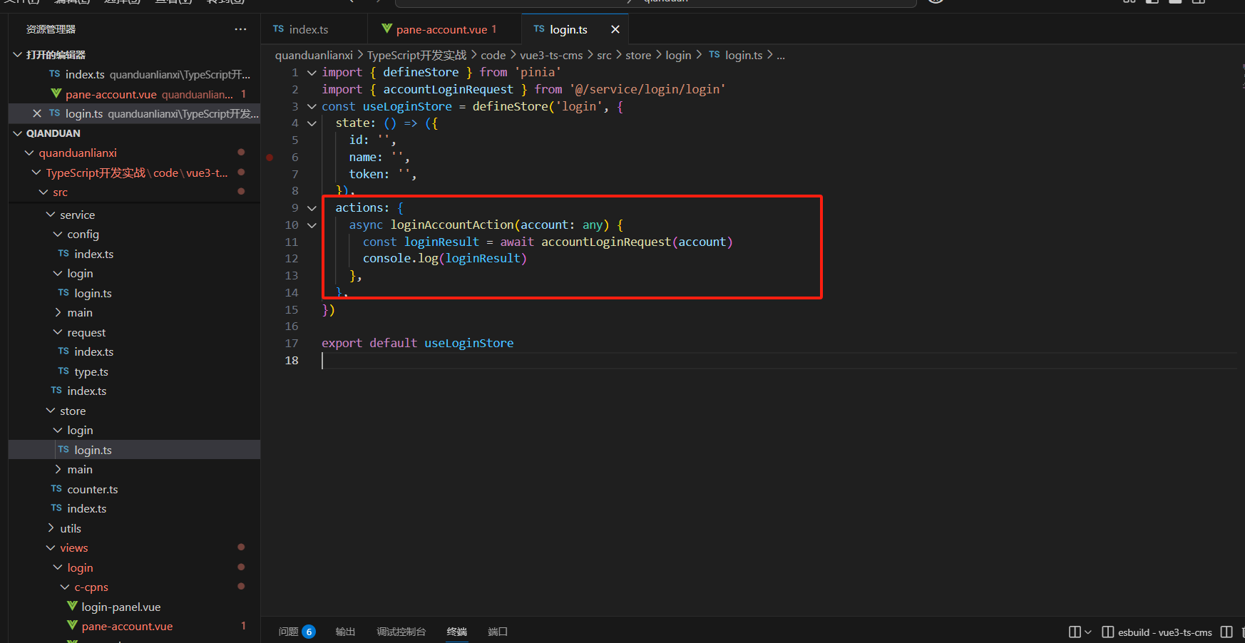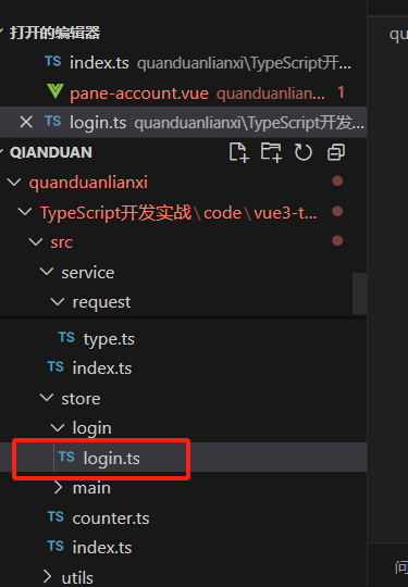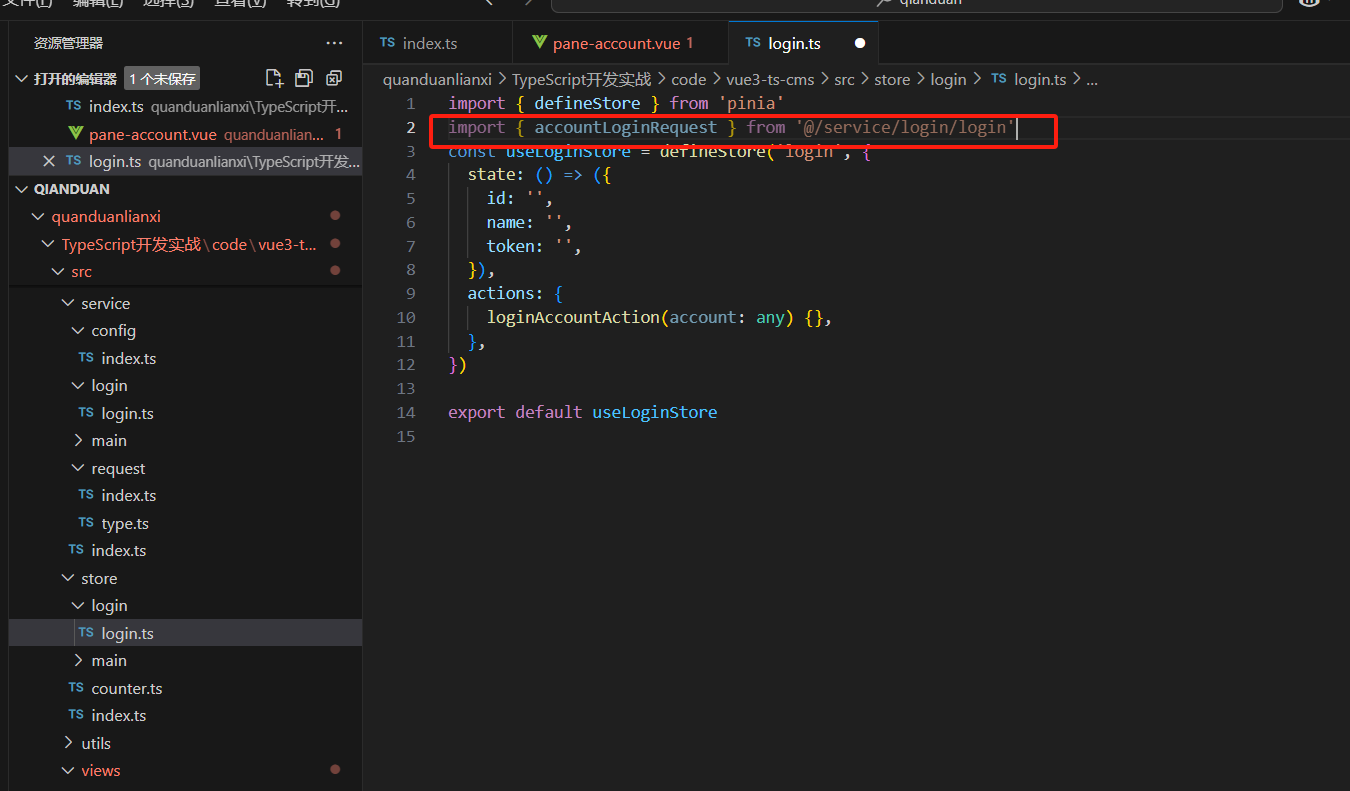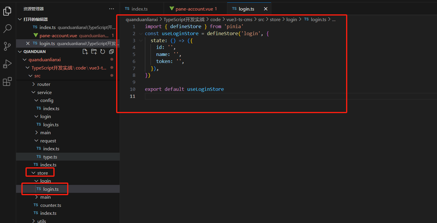 所以我们在store里面新建文件login.ts