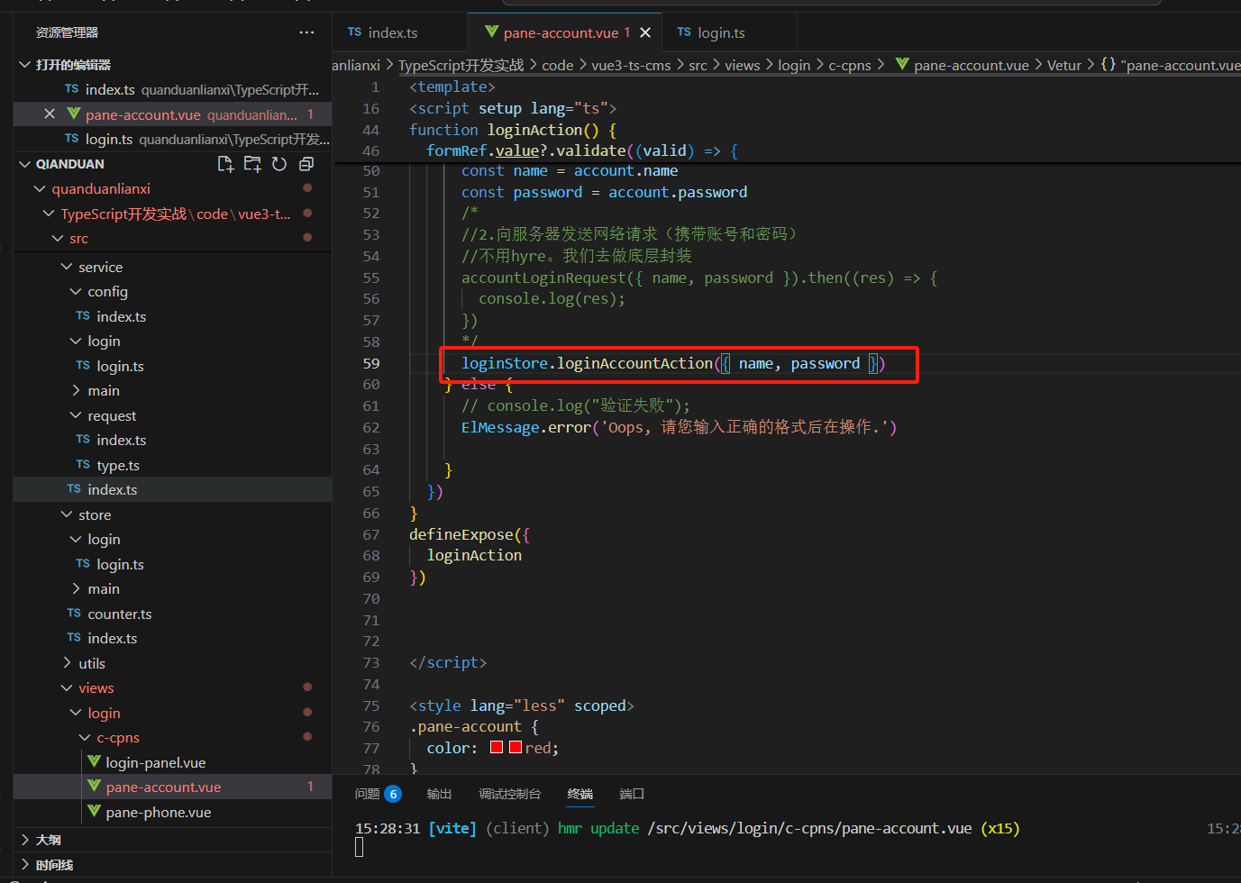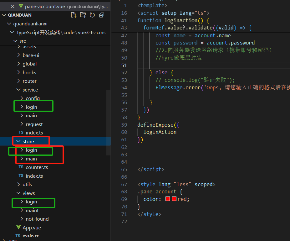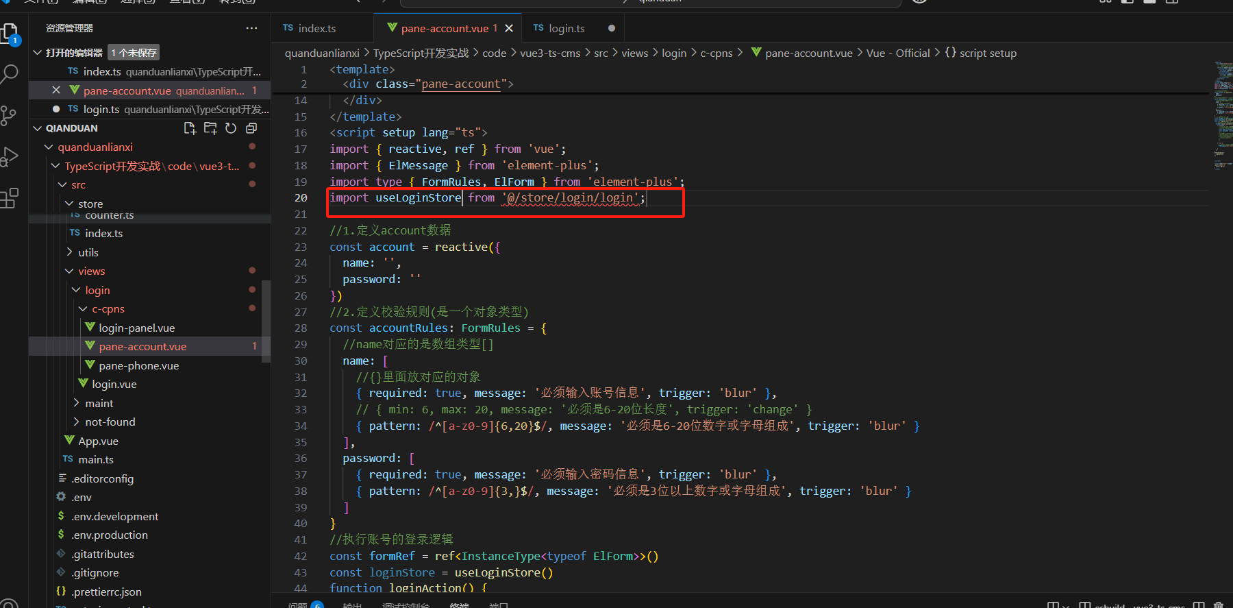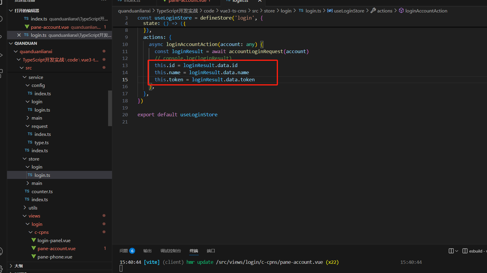 所以我们在store里面新建文件login.ts