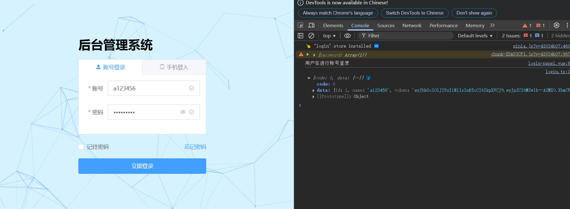 登入成功会拿到一些数据我们放到pinia里面
