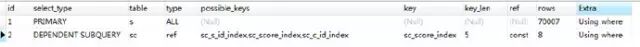 这里有连表的情况出现,我猜想是不是要给sc表的s_id建立个索引