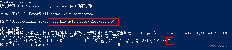 输入命令:set-ExecutionPolicy RemoteSigned 回车即可