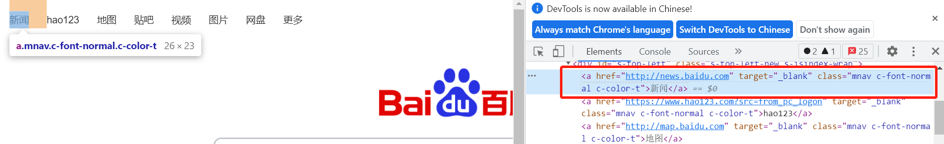 注意:由于百度首页有很多标签名字都是”input",因此上述代码只会定位到网页的第一个“input”标签。