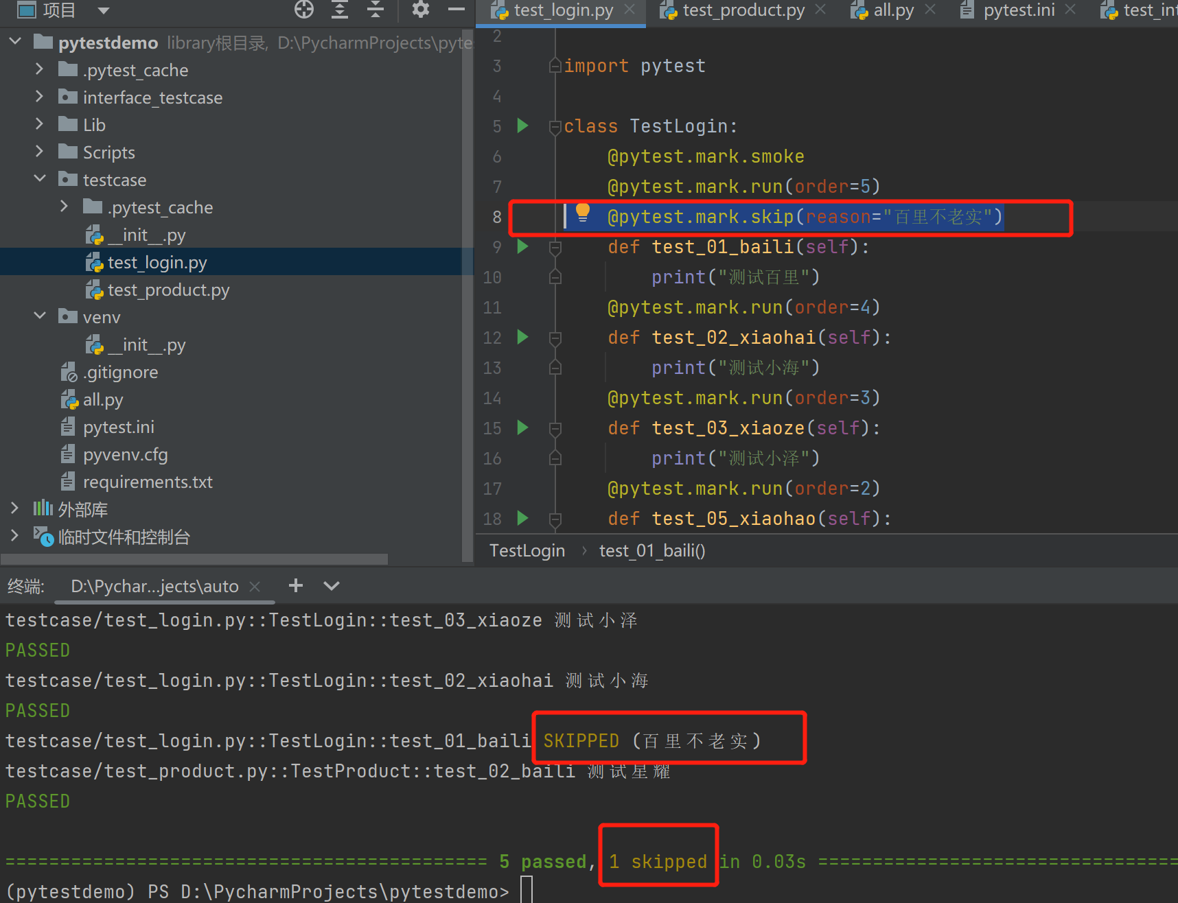 3.pytest 可以实现测试用例的跳过以及reruns失败用例重试