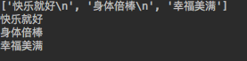 with open("新礼的秘密/生命的真意",mode="r",encoding="utf-8") as f: content=f.readlines() print(content) for i in content: print(i.strip('\n')) f.close()