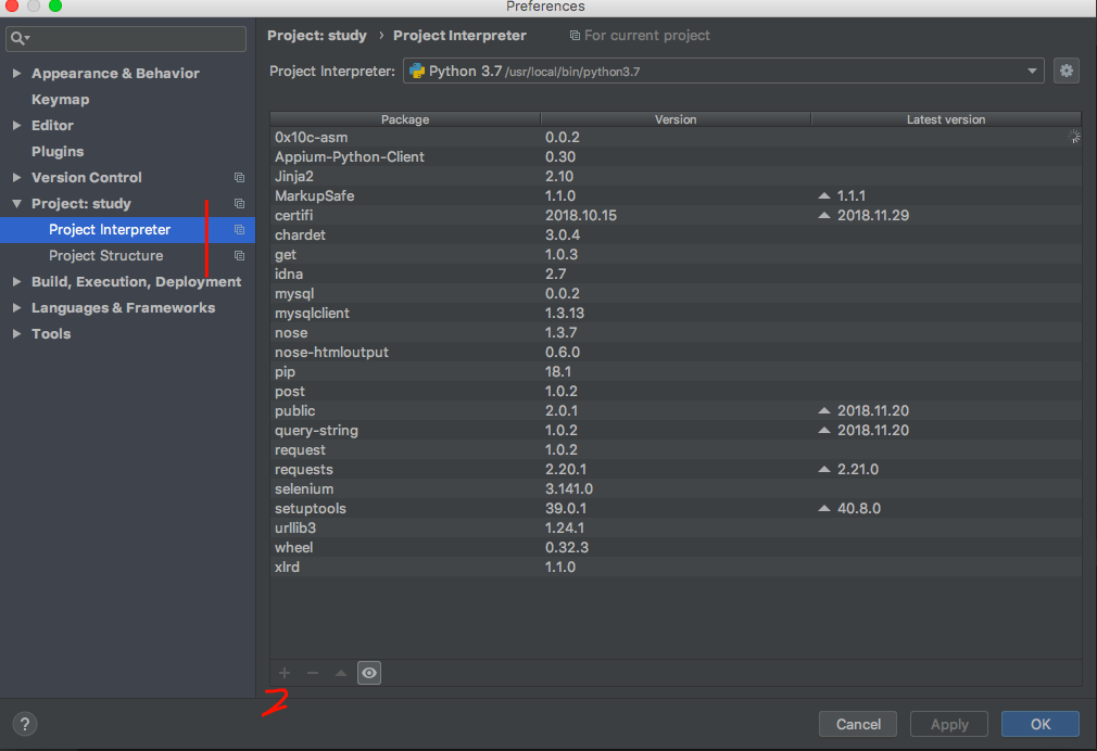 如下图,点击+号,跳出弹窗,在弹窗输入requests即可下载