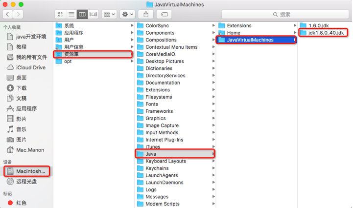 Mac会默认安装到:资料库/Java/JavaVirtualMachines/jdkxxx.jdk