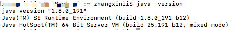(4)回到终端,使用"source .bash_profile"使配置生效,然后输入”java -version”,如果看到jdk版本为则说明配置已经生效
