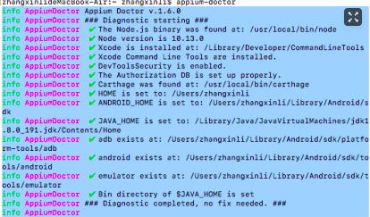 命令:npm install -g appium-doctor,在输入appium-doctor如下图